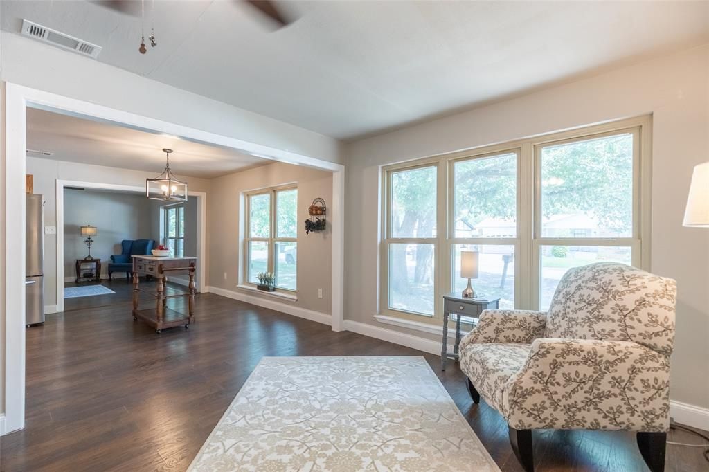This updated 3 bedroom home has 2 full baths and wood flooring throughout. Ample closets and storage space. Large windows provide impressive lighting to the two living areas, kitchen and dining area. This home is move in ready and includes the refrigerator, washer and dryer. All of this in a great location in the Wylie School District. You will be impressed with the two large live oak trees in the front yard and even more so when you enter the home!