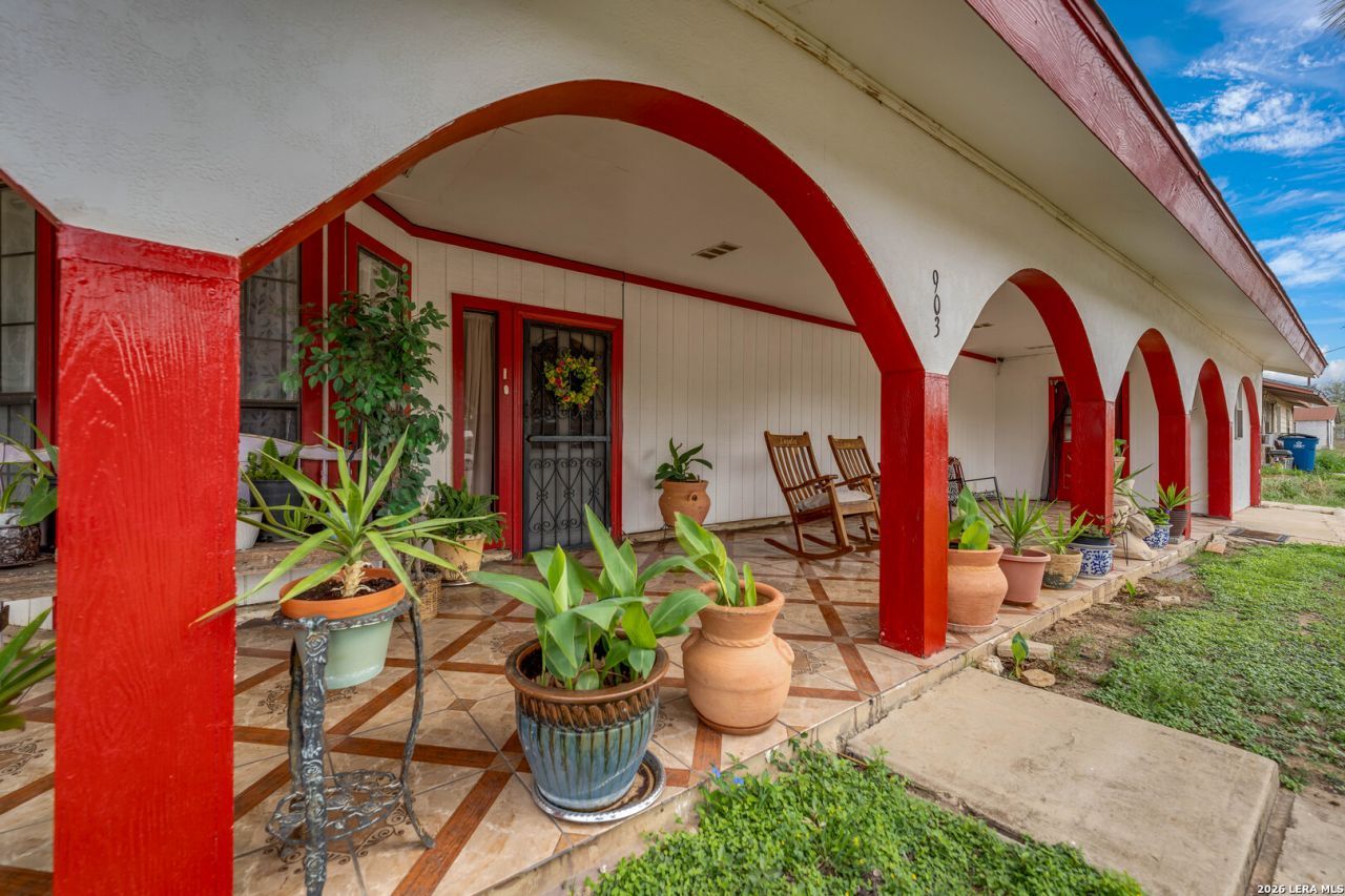 Located in the heart of Poth, Texas, this warm and welcoming two-story property is filled with character, charm, and endless possibilities-all while embracing true small-town charm and close proximity to local conveniences. A large, inviting front porch sets the tone for this cozy, feel-at-home property-perfect for morning coffee or relaxing evenings. Inside, youre greeted by vibrant yet tasteful colors, abundant natural light, and a comfortable, lived-in feel that instantly makes you feel at home. The spacious, open-concept living area flows effortlessly into the dining space and thoughtfully designed kitchen, where a generously sized island becomes the heart of the home-ideal for cooking, gathering, and entertaining. The main level features a private and serene primary suite, complete with an additional 9x9 flex space that offers endless possibilities-whether you envision a dreamy walk-in closet, nursery, reading nook, or private office. Two additional bedrooms and another versatile flex/office space provide functionality and flexibility for everyday living. Upstairs, a spacious and efficient multi-use area offers incredible versatility, complete with its own full bathroom and kitchenette-perfect for a guest retreat, game room, creative studio, or additional bedroom space. Step outside and youll find even more to love. A detached, beautifully converted casita-currently leased-provides full living accommodations including a bedroom, bathroom, kitchen, and living area, making it an excellent and effortless income-producing opportunity. An additional exterior space offers the perfect setup for a man cave, workshop, or hobby space, complete with its own bathroom. With a total of 5 bedrooms and 4 bathrooms (including the casita), this inviting, flexible, and thoughtfully designed property is ideal for multi-generational living, supplemental income, or simply spreading out and enjoying every inch of space. A rare, charming, and opportunity-filled home in Poth that truly feels like home.